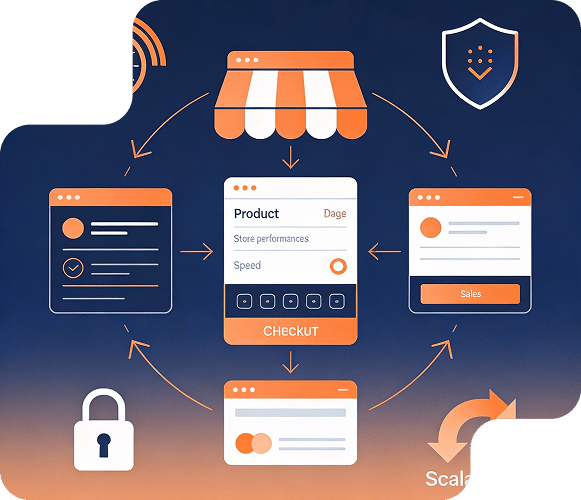 نجهّز المتجر ليكون مهيأ للبيع منذ اليوم الأول، من خلال تحسين صفحات المنتجات، سلة الشراء، ومسار الدفع بما يدعم زيادة معدلات التحويل